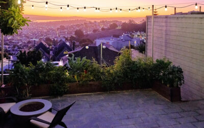 Remodel of an existing roof deck in the South Park neighborhood of San Francisco. Drought-tolerant plants frame a clean, modern space for entertaining. Evergreen wax myrtle makes an attractive screen. Sages and Toyons look (and smell) like California.